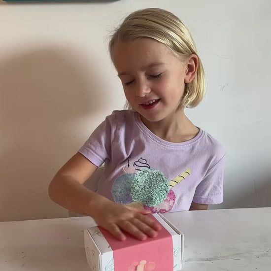 Deze set ontstond samen met Lia, een kleine zoetebek die dol is op snoepjes. Haar tekeningen van ijsjes, koekjes en lolly’s vormden de inspiratie voor de ontwerpen.